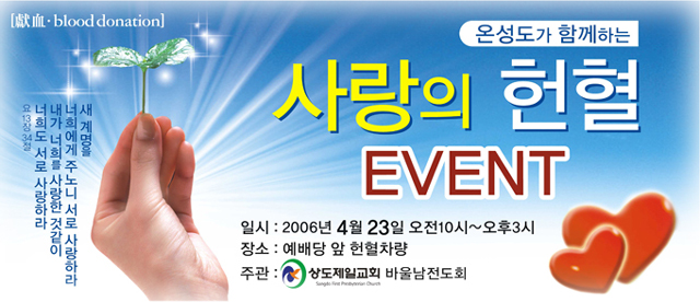 "ÀåÅÂ½Ä Áý»ç´Ô ¼ö°í¿¡ ´Ã °¨»çµå¸³´Ï´Ù. 4¿ù 23ÀÏ \`»ç¶ûÀÇ ÇåÇ÷ EVENT\` È«º¸¿ë º£³Ê ½Ã¾ÈÀÔ´Ï´Ù. ȨÇÇ¿¡ ¿Ã·Á ÁÖ¼¼¿ä. ÁÖÀϳ¯ ºÆ¿ä"